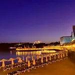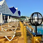 Das 5-Sterne-Hotel Orange County Alanya liegt 75 km vom Flughafen Gazipasa entfernt und verfügt über einen 1.000 Quadratmeter großen Strandbereich. Das Hotel liegt am Strand und bietet einen beheizten Swimmingpool sowie 313 Zimmer mit Blick auf den Ozean.