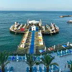 A hozzávetőlegesen 20 perc sétára található Alara Grand Bazaar területéhez hozzáférést kínáló Orange County Alanya Hotel kínálatában napozóterasz, masszázsterápia és is szerepel. Az 5 csillagos, első osztályú üdülő büszkélkedik 1000 négyzetméteres strandterülettel, a Water Planet Akvapark pedig csak 1 km-re van.